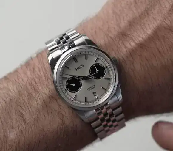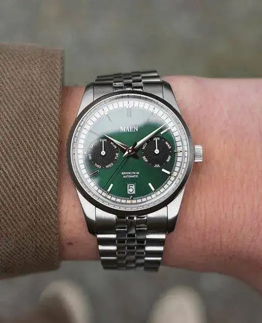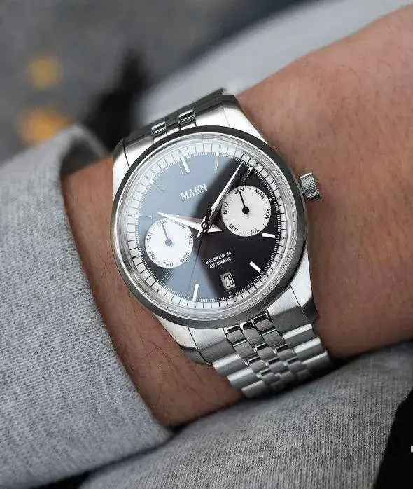 De esto no se sale...El verde con las subesferas en blanco hubiera quedado mejor EMHO, supongo que por eso me decantaría por el salmónAhora que @iVAMP nos incita al consumismo de 36ers (como si necesitásemos un empujón), el próximo 15 de marzo se lanza el pre-order del MAEN Brooklyn 36, que se sale un poco de la corriente habitual por ser un "panda" no cronógrafo, sino que tiene dos subdiales para día de la semana, y mes, y ventana de fecha a las 6 (buena simetría de la esfera), y hasta 6 configuraciones de color de esfera y subdiales disponibles.