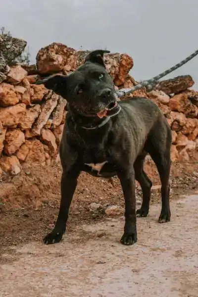 Es cruce de pitbull (necesita licencia), es ya mayor, y tiene leishmania aunque controlada. Y por si fuera poco su piel es negra, por alguna razón los perros de color negro tardan más en ser adoptados.