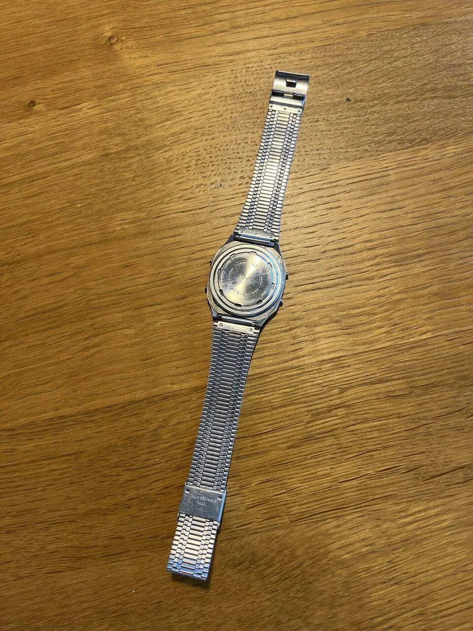 El brazalete de acero es sorprendentemente sólido y está muy bien acabado, nada que ver con los que les ponen ahora a los neo vintage tipo Timex Q.