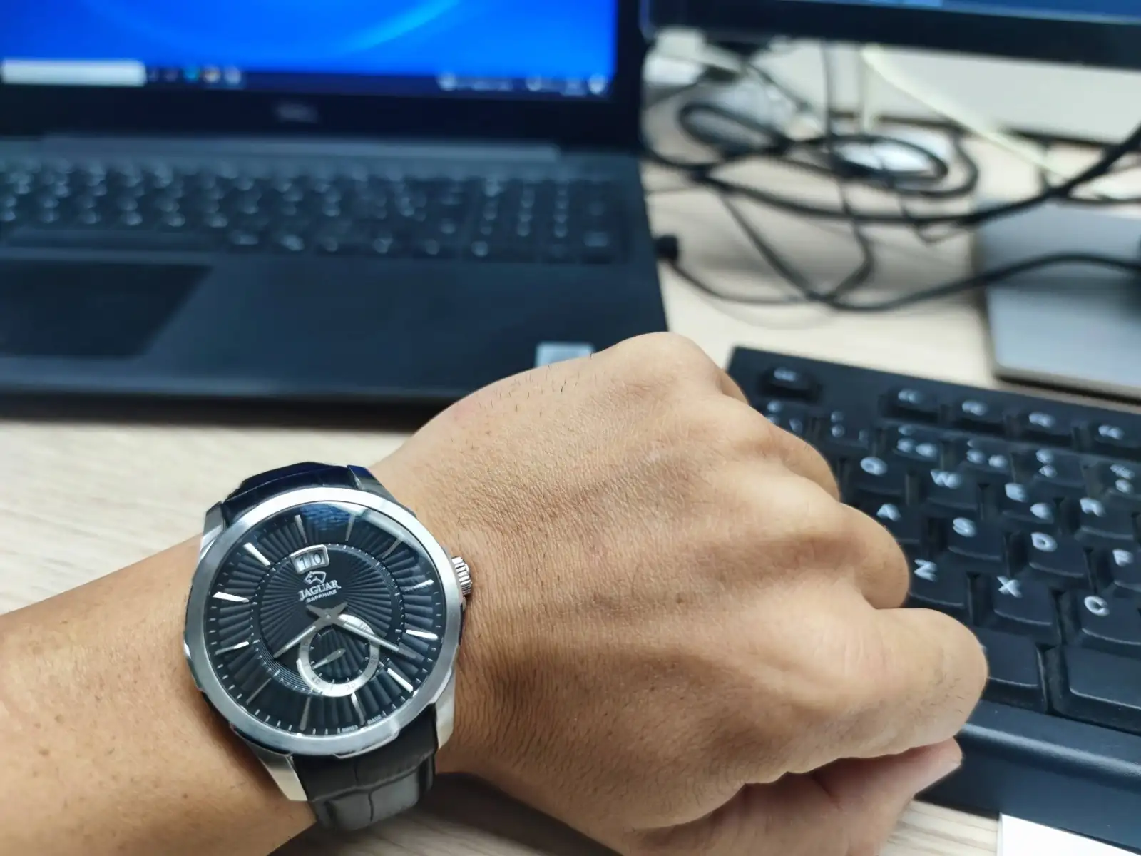 Pasé muchísimos años con él como único reloj, hasta que, por los 30, pedí que me regalasen este Jaguar. No tenía ni idea de relojes, pero el "Swiss Made" y el hecho de que era una marca reconocida de coches de lujo me hizo pensar que era un buen reloj. Eso y los más de 300 € que costaba, que por aquel entonces me parecía una cifra alta para un reloj.