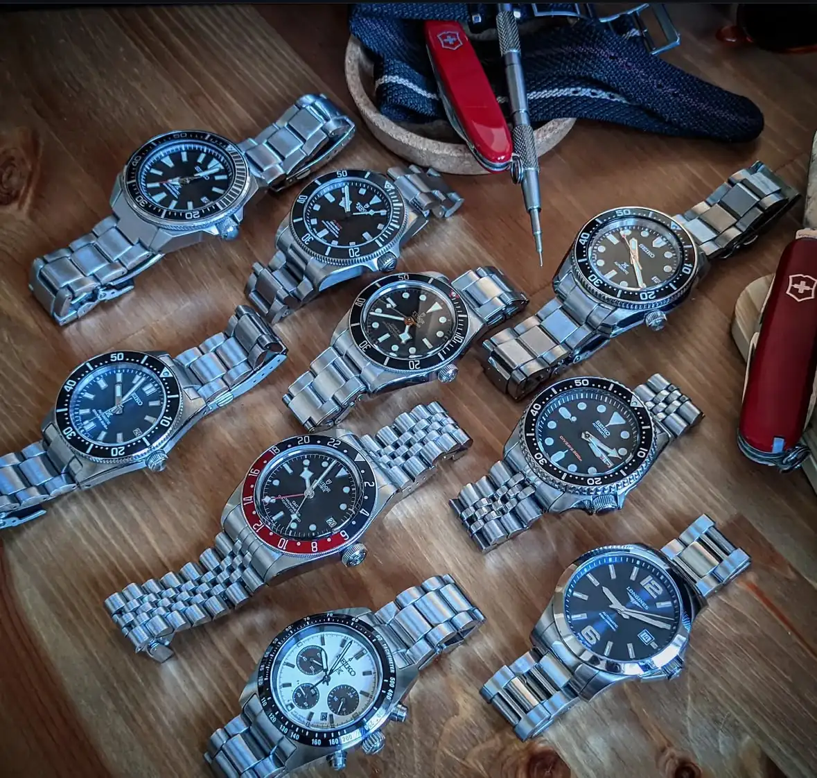Pero como futuribles: Longines Flagship Moonface , Longines Legend Diver 39, Vulcain Nautique, Black Bay Pro blanco, Tudor Ranger, Tudor Chrono Heritage, Pelagos FXD, Omega Speedmaster, Rolex Sub LV (si alguna vez me llaman...)