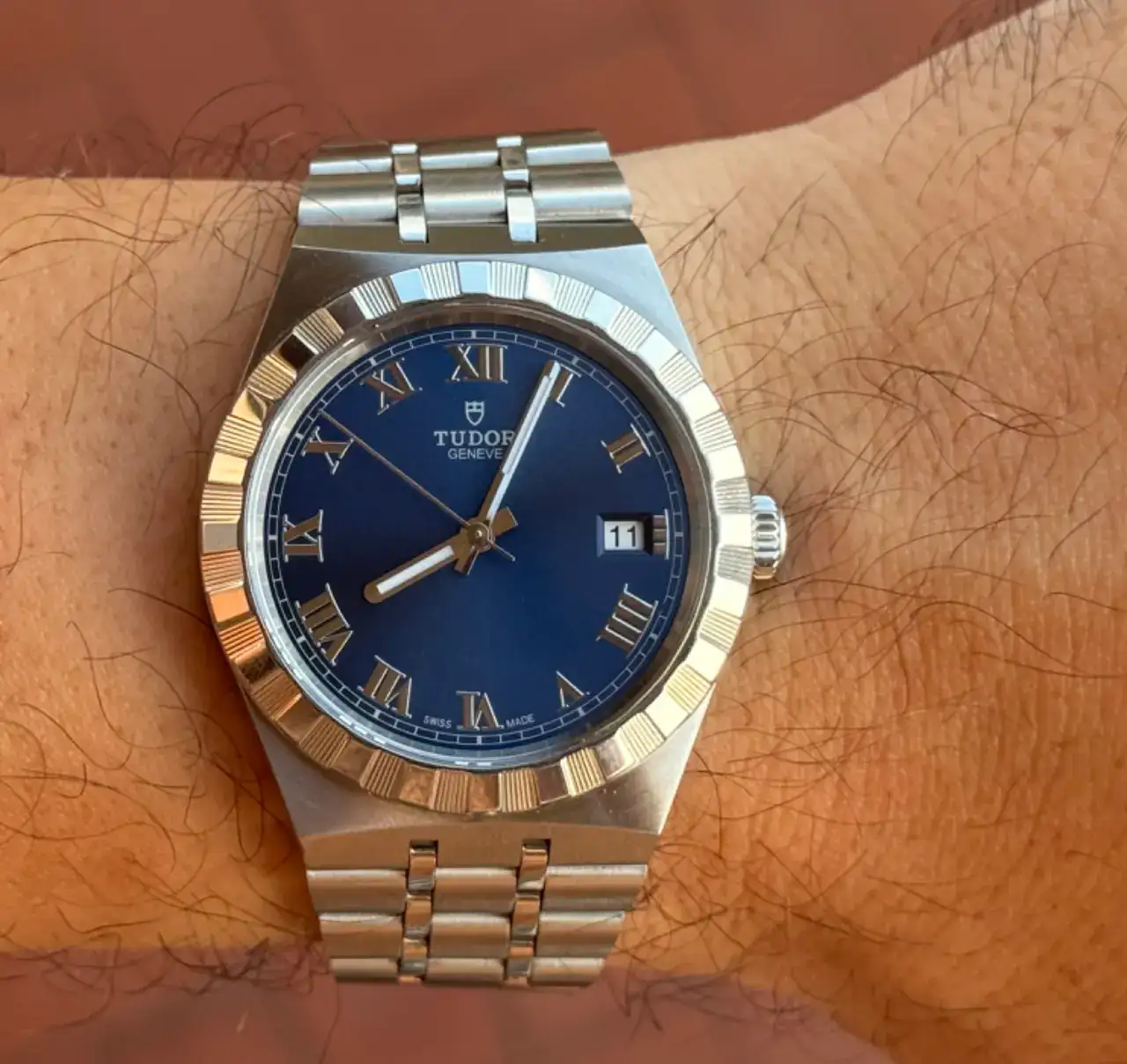 Ya tenía cinco Tudor y la caja con seis huecos, así que, después de meditarlo mucho y con vistas a una boda inminente, compré el Royal para tal ocasión. La boda se va a retrasar, así que se ha quedado como reloj de pedida y, para la boda... Dios dirá.