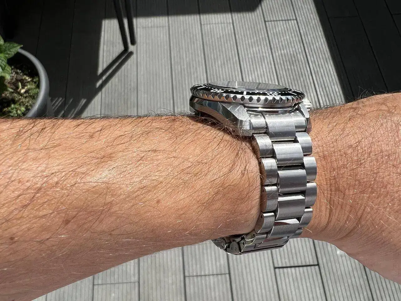 Buuufffff!, brutal como te luce compañero, qué bonito es. Encima tenemos la misma medida de muñeca, así me hago mas a la idea!Yo tiendo a tamaños más pequeños, tengo breitling de 45 (que hoy no compraría) Panerai de 44 (que es un caso aparte porque un pam es un pam) y tengo otros de 41, 40, 39, 37…