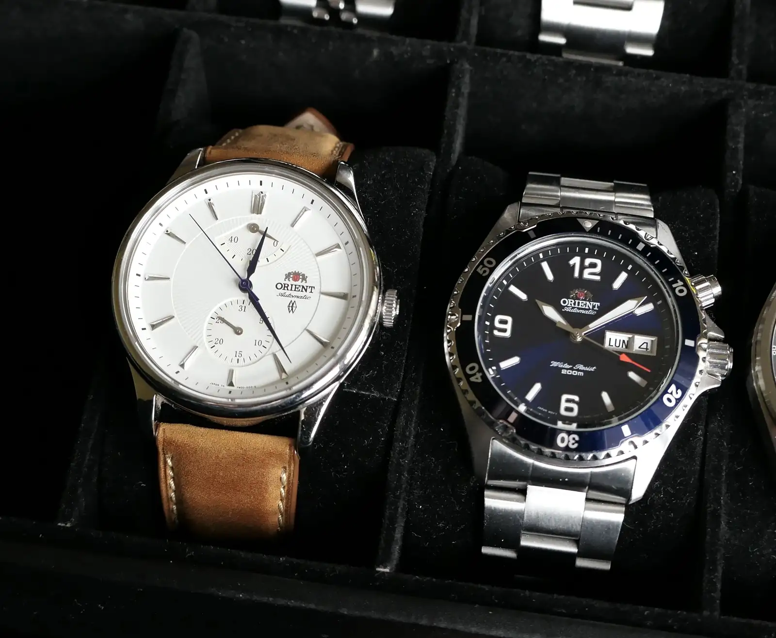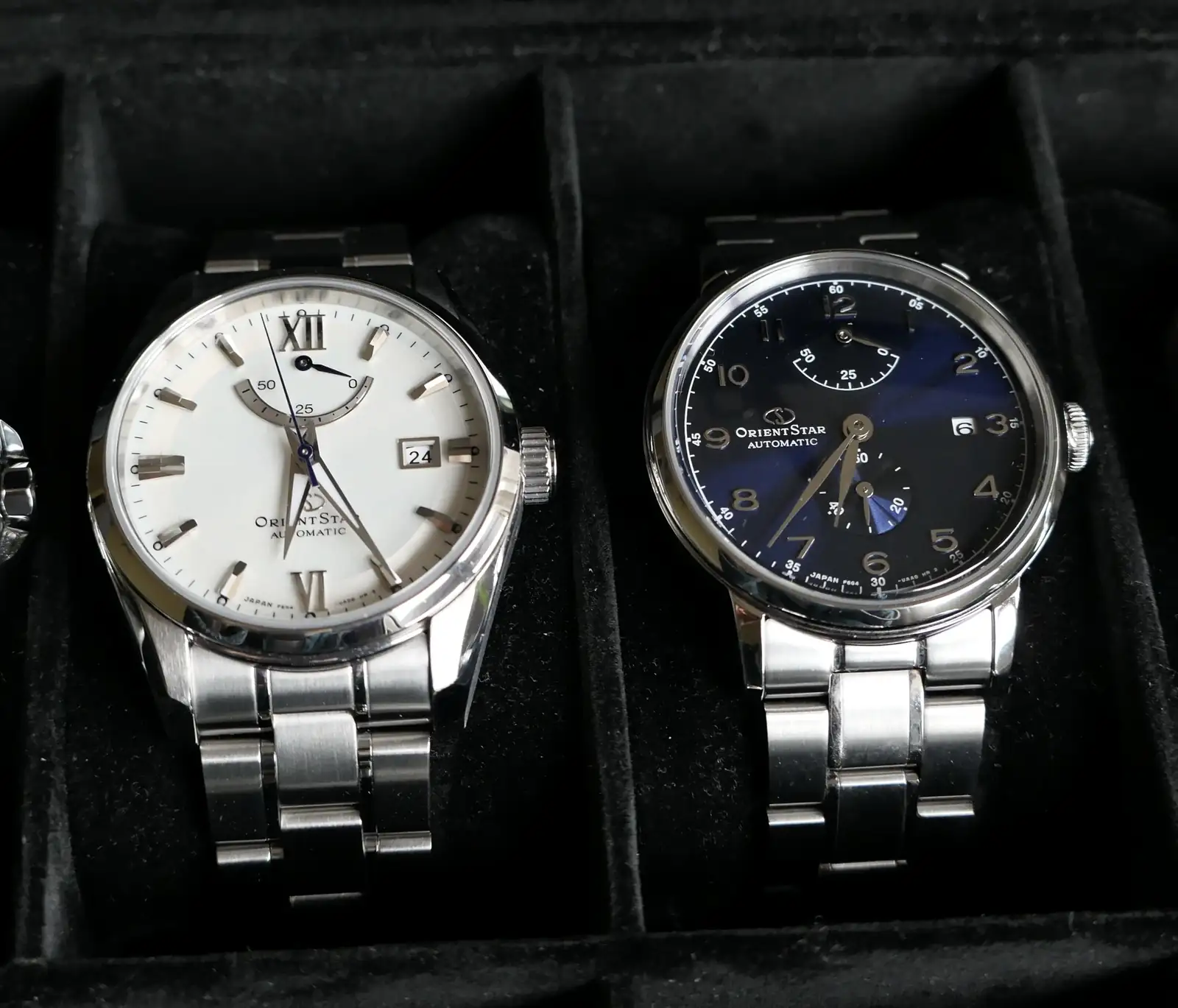 ,….como también suele ser típico de muchos coleccionistas no puede faltar la marca Orient, quien no ha tenido o tiene uno? El típico Mako, increíble calidad precio, incluso en su gama Star , también se coló un Phoibos por el medio…, una bonita edición limitada con el dial artesanal en piedra similar al mármol.