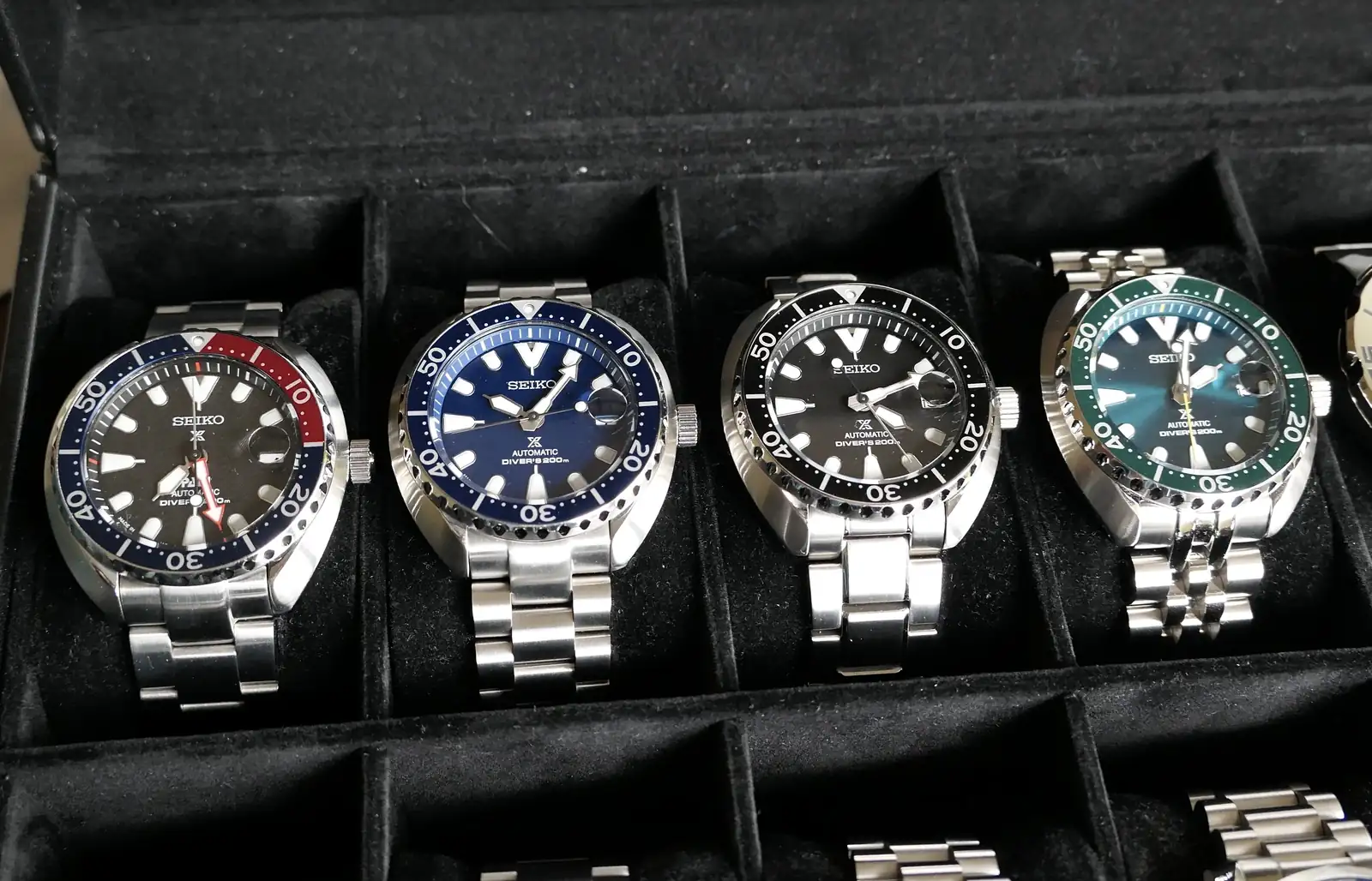Todos son versiones “Made in Japan” y menos el negro todos tienen brazalete Strapcode, es un modelo que realmente de mini no tienen nada ya que miden 42,3 mm de ancho sin corona pero gracias a su longitud entre asas tan cortas lo hacen verse más pequeño.
