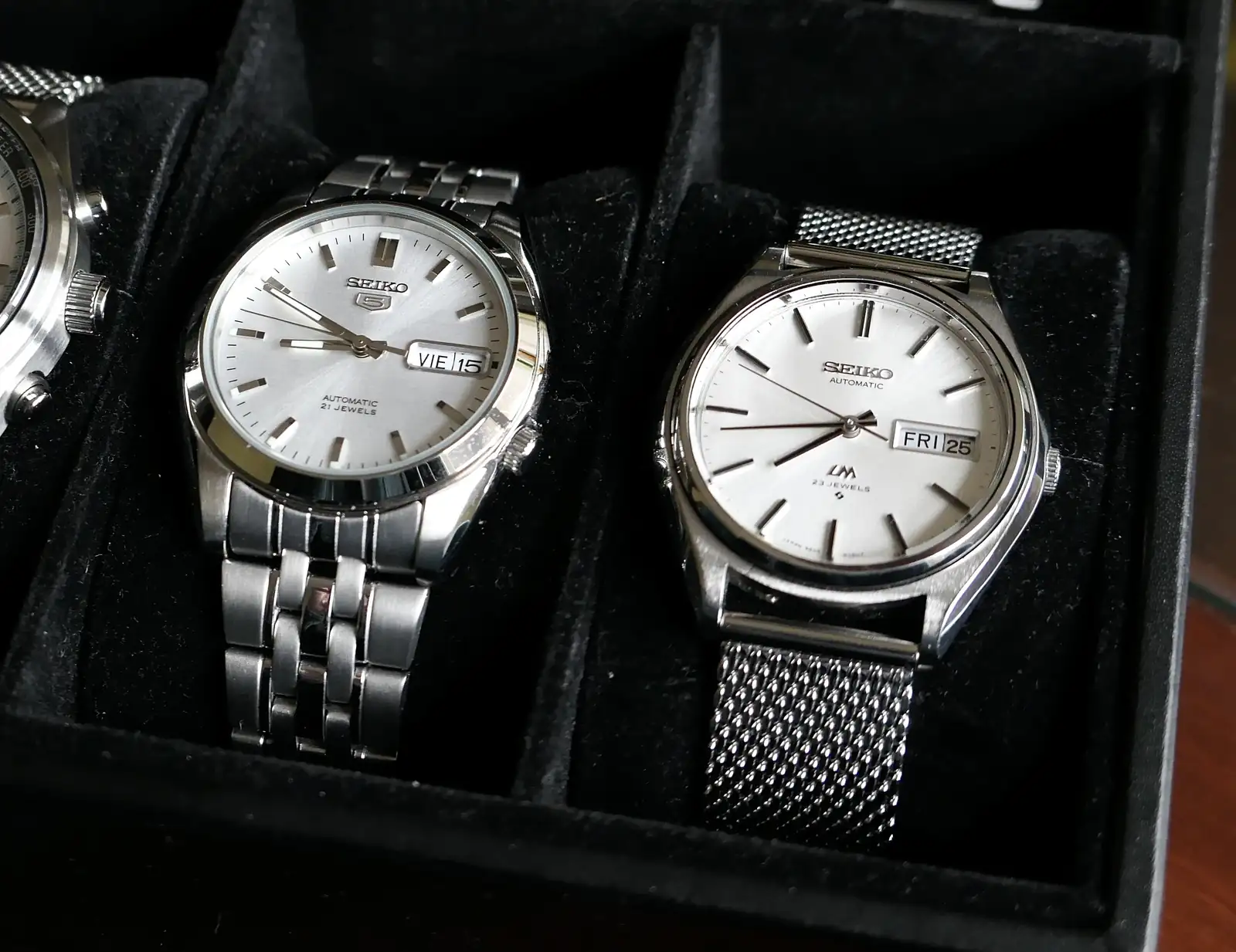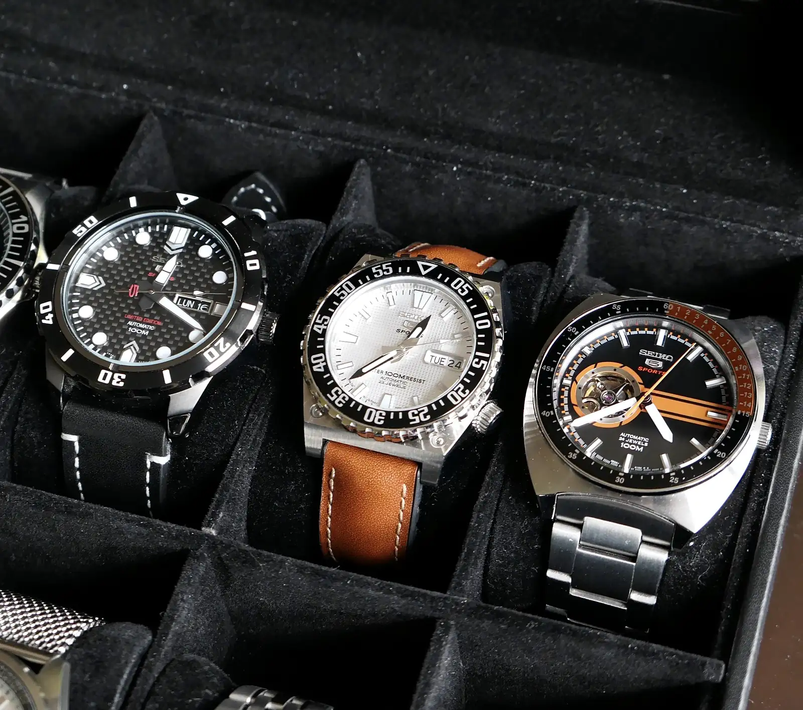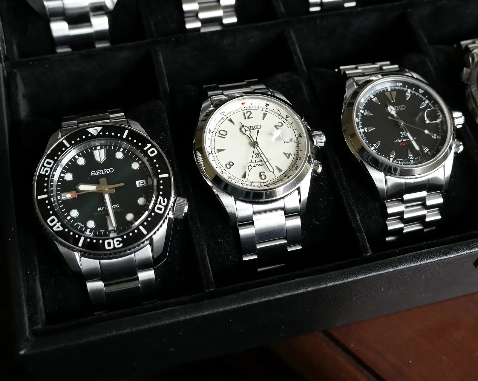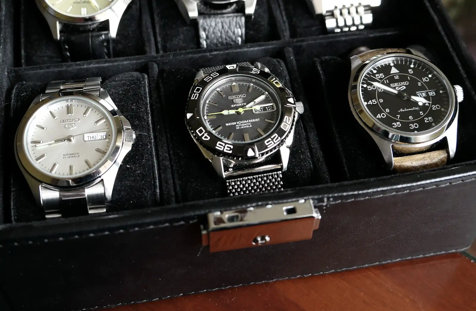 No podían faltar unos cuantos Seiko 5 Sports, un vintage (Lord Matic) y el conocido SKX 007 el cual curiosamente siendo en teoría un modelo superior al 5 Sports “Atltas” se percibe en mano bastante por debajo, fue este Atlas comprado en el mercado gris hace más de 20 años el que realmente me engancho de verdad a esta maravillosa afición