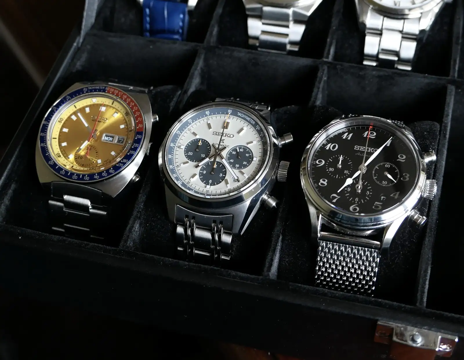 Como gran amante de los cronos también hay en la caja un poco de variedad, desde el vintage conocido primer crono automático del mercado (parece ser..) el 6139 “Pogue”, el cual por no usar esta a la venta en el apartado FCV, también un Presage 60Th con esfera artesana “Urushi” y un Prospex Speedtimer, el cual como curiosidad ganó el conocido premio “DESIGN AWARD 2024”