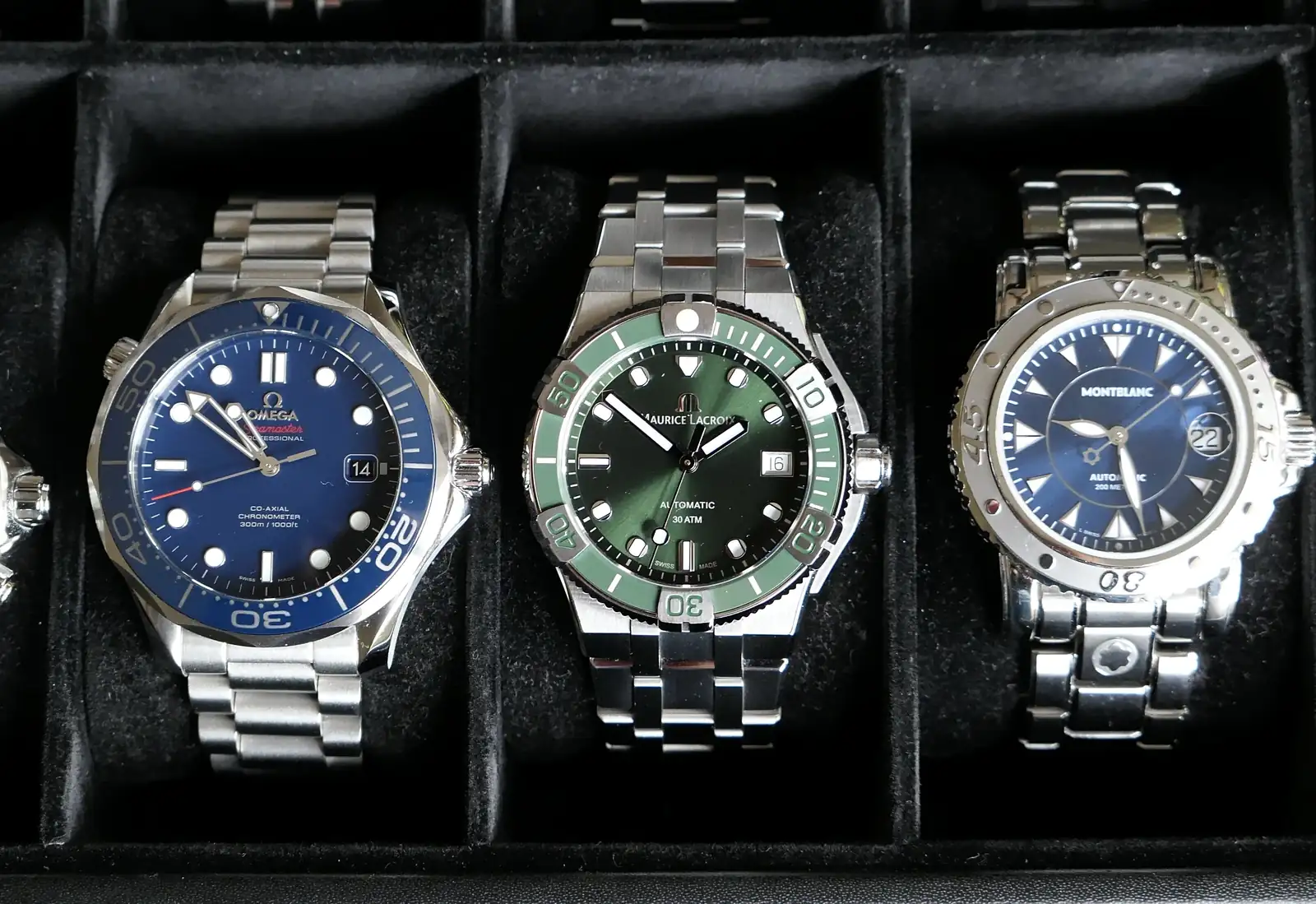 Desde hace 9 años empecé a sentir interés por los relojes suizos, de entre todas las marcas el que más me sorprendió fue el Maurice Lacroix Icon Venturer por la calidad de sus acabados, en menor medida también me sorprendieron los acabados del Montblanc diver de 38, además encontrar una unidad NOS con tantos años a estrenar con su garantía oficial y todo, fue una experiencia única, quizá la esfera preferida sea la del Seamaster 300 cerámico no deja de ser hipnótica.