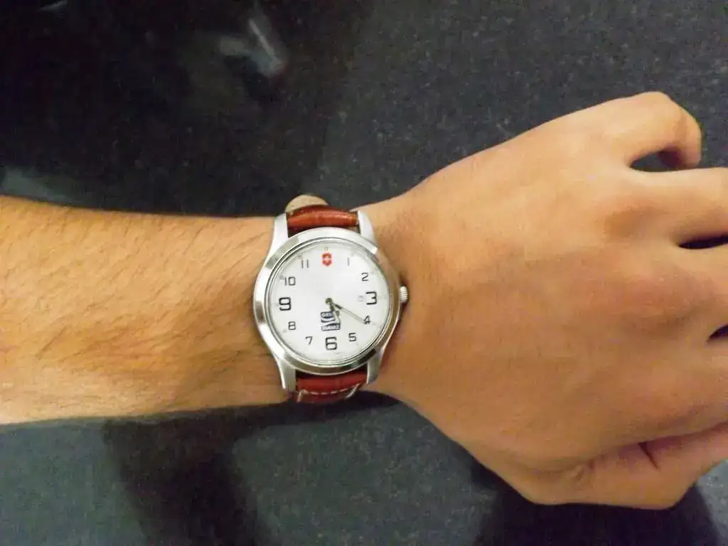 3. Victorinox: este es un reloj que le habrán regalado a mi padre hace unos años donde trabaja. Lo recuperé de su cajón y me lo quedé. Representa más de lo que cuesta para mí. Le tengo cariño y como era de cuarzo le mandé a quitar la segundera para ponermelo de vez en cuando. Un bonito reloj: