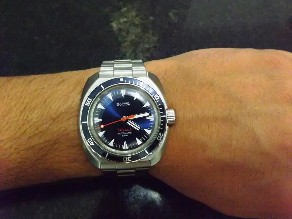 4. Vostok Scylla: Un proyecto de un foro italiano al que logré entrar gracias a que un gran compañero del foro: Mac Ripper dio el grito, y me pude registrar. Además de suerte tuvo el detalle de cederme su número, el 93, el cual es mi año de nacimiento. Me gustan los tonos azules y esa trasera que es divina. Fue mi primer ruso y como no, de la mano de Vostok