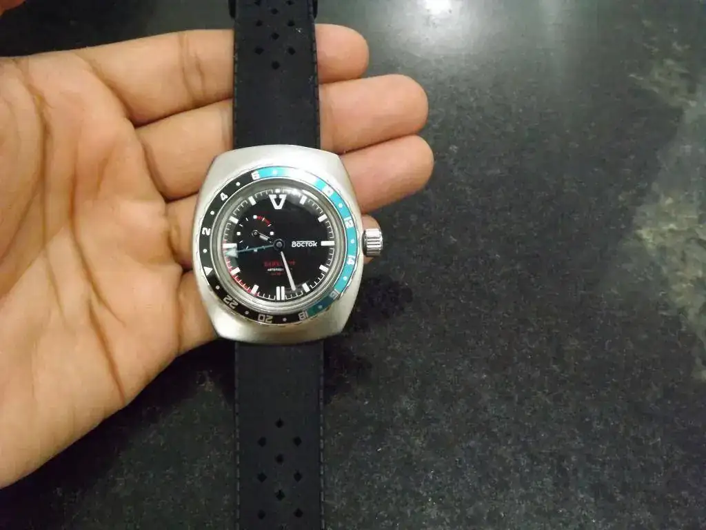 7. Vostok Scuba dude: Un día me entró la fiebre ruski y me dio por ver Vostoks a morir, me entró el gusanillo de un Scuba dude; una colección de rusos sin un Scuba dude, no la veo. Pues a conseguirlo, quería un modelo en específico que ya no se hace y a esperar, creo que esperé 4 meses a verlo en el FCV, y gracias a un compañero que me dio el grito desinteresadamente, no recuerdo tu nombre pero gracias y al que lo vendió, lo conseguí. Es de un color azul muy bonito y además de alguna u otra forma me recuerda a mi padre que fue buzo.