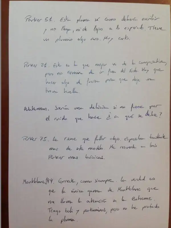 Parker 51. Esta pluma no la tengo en sus mejores momentos. No escribe como debiera. Tenemos otra por casa y es una experiencia escribir con ella. En esta el plumín "rasca" algo y, si el trazo es rápido, puede quedarse corta de tinta. Creo que el problema puede estar en el plumín, que necesite ser cambiado.
