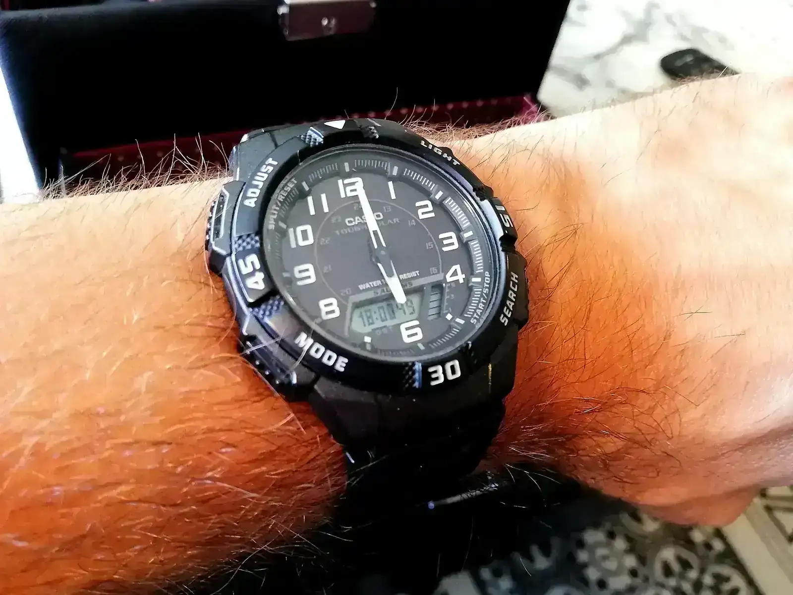 4) Dispuesto a no repetir viejos errores, al poco decidí que era menester hacerse con un reloj para las cafradas: bricolaje, senderismo, aeropuertos y demás selvas. Casio es el rey en estas lides, así que para casa se vino este Casio AQ-S800W-1BVEF: