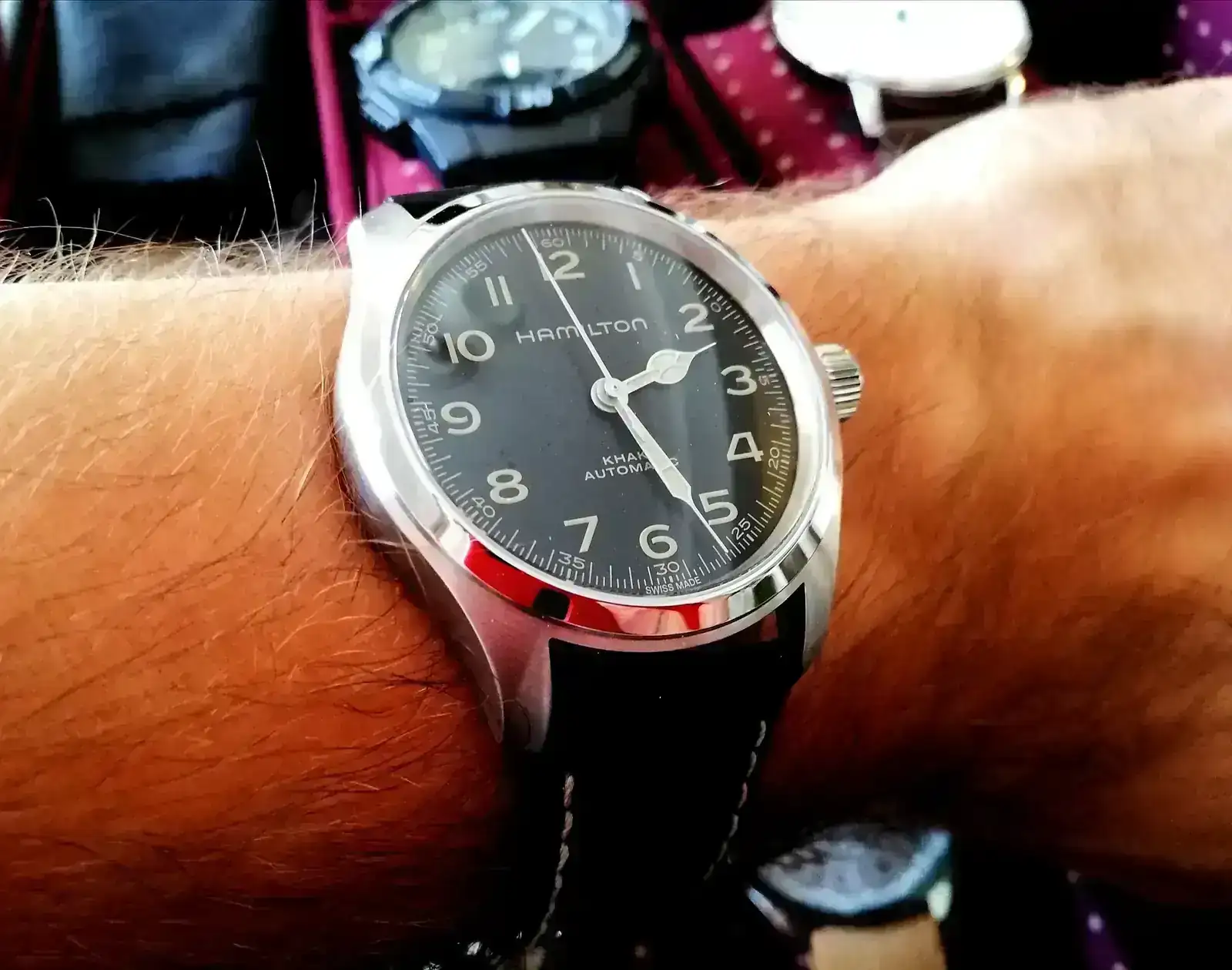 6) Ahora sí ya me sentía preparado para la caza mayor. Con cierto nosequé en el estómago (sabía que esto ya se estaba saliendo de madre), y una espera autoimpuesta de meses (para cerciorarme de que no era un capricho sin más... que da igual, sí lo es), me fui a por el reloj de una de mis películas favoritas: el Hamilton Murph (38mm):