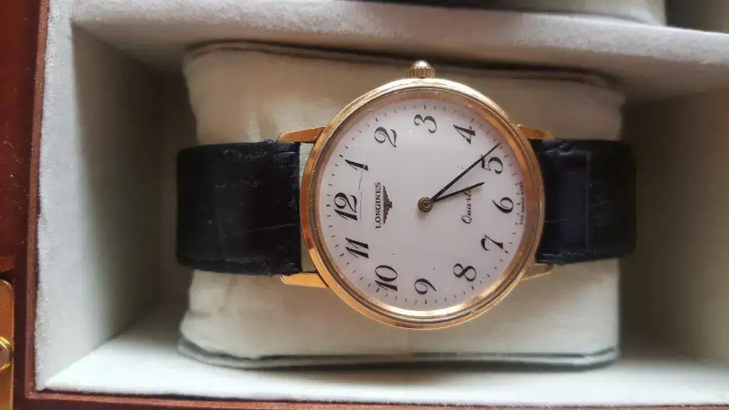 Mi reloj más preciado pues se trata de un regalo de mis padres. Es de la época en que los cuarzos presumían de exactitud y estuvieron a punto de desbancar a los automáticos. Lo elegí por la limpieza de su esfera, sus números arábigos que me encantan y, especialmente, por su extrema comodidad pues se trata de un reloj muy plano y lo puedes llevar con camisa sin que moleste para nada.