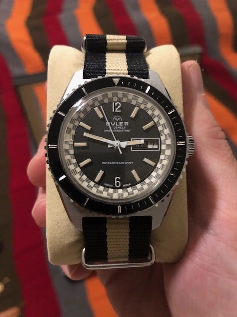 Buler Skin Diver, todo un vintage de los 70, lo vi en la relojería/taller de mi confianza, hablé con mi amigo/dueño de la misma y me enseñó muchas piezas que había adquirido en estado NOS, este Buler fue el que más me gustó y se vino para casa.