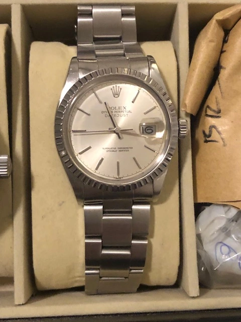 Rolex Datejust, aproximadamente del ochenta y tanto, el reloj de mi padre propiamente dicho, como os comenté al principio del hilo, tenía varias piezas, pero este en concreto es el que yo diría que es el reloj de mi padre como tal, el que más tiempo llevó, el que más le gustaba y el primer reloj con el que yo recuerdo haberle visto. Todo un pequeño tanque, siempre vi a mi padre hacer de todo con él, baños en mar incluidos, ahora lo disfruto yo y funciona perfectamente. Como dato es el único al que le tengo puesto con su armis original, no me atrevo a ponerle otra cosa por lo que es el reloj.