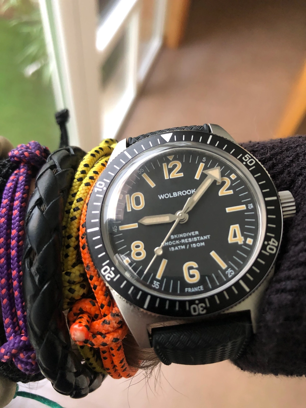 Wolbrook Skindiver, Reyes de este año, no contaba con él, pero se cruzó aprovechando que puse en la pista de salida un Dogma Diver Wordtime vintage, la verdad es que me gusta. Y como nota no sabía que esta reflotada marca fue elegida por Neil Armstrong en su día para hacer sus pruebas y sus cosas. Por visto en el interior de la caja lleva un sistema de protección para el movimiento bastante curioso, un plus.