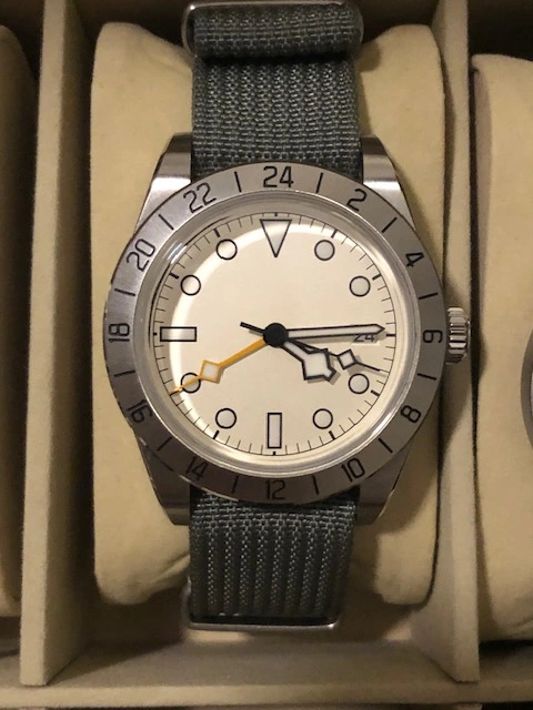 San Martin GMT, primera y única incursión en este mundo, de momento bien, la idea era un gmt contenido en precio, que sirviese como tal para cuando toque viajar a otros usos horarios sin temor a inconvenientes. Hace estupendamente bien su función y su diseño, pues me gusta…como para no hacerlo viniendo de donde viene.