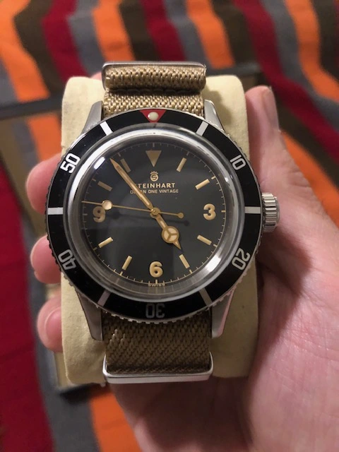Steinhart One Vintage, vale, el controvertido de la cole, mucho se le ha criticado a esta marca por los fusilamientos que hace y en parte con razón. Peeero, es un producto estupendamente hecho, buen calibre, en mi caso escogí este modelo porque me flipa el Sub con dial Explorer, hoy en día es imposible para los mortales comunes poder hacerse con una pieza de esas, pues en este bichejo se tiene una posible solución sin más ni menos y contento me hallo.