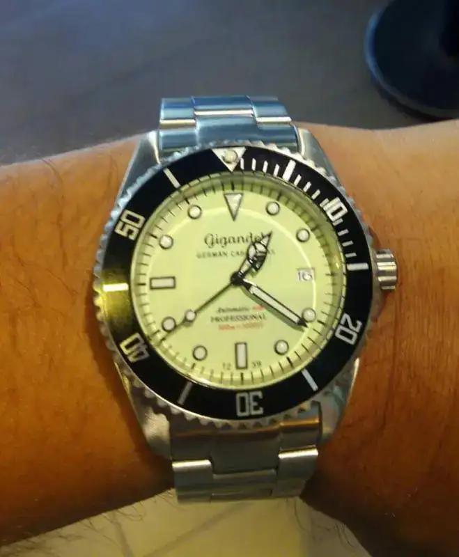 Un gigandet con calibre miyota y esfera amarilla radiactiva.