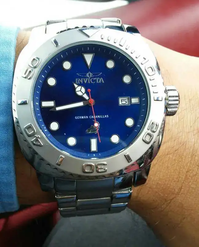 Y un invicta en azul pepero,para ser neutral.Caja de casi 50 mm,válvula de helio,calibre Seiko...