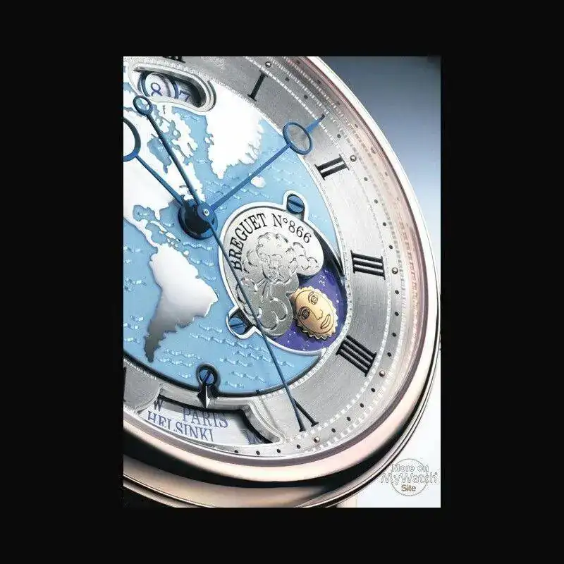 El Hora Mundi de Breguet, que necesitó tres años de desarrollo e incorporó cuatro patentes, presenta la ventaja de disponer de un doble huso horario de cambio instantáneo gracias a la manipulación del pulsador y de la corona. Tras determinar la primera ciudad, la hora y la fecha, el propietario del reloj solo tiene que ajustar la segunda ciudad. El mecanismo interno calculará automáticamente la hora y la fecha gracias a un sistema compuesto por levas, martillos y un diferencial integrado. De esta forma, con una simple presión del pulsador se puede viajar entre zonas horarias sin perturbar el funcionamiento preciso del reloj.