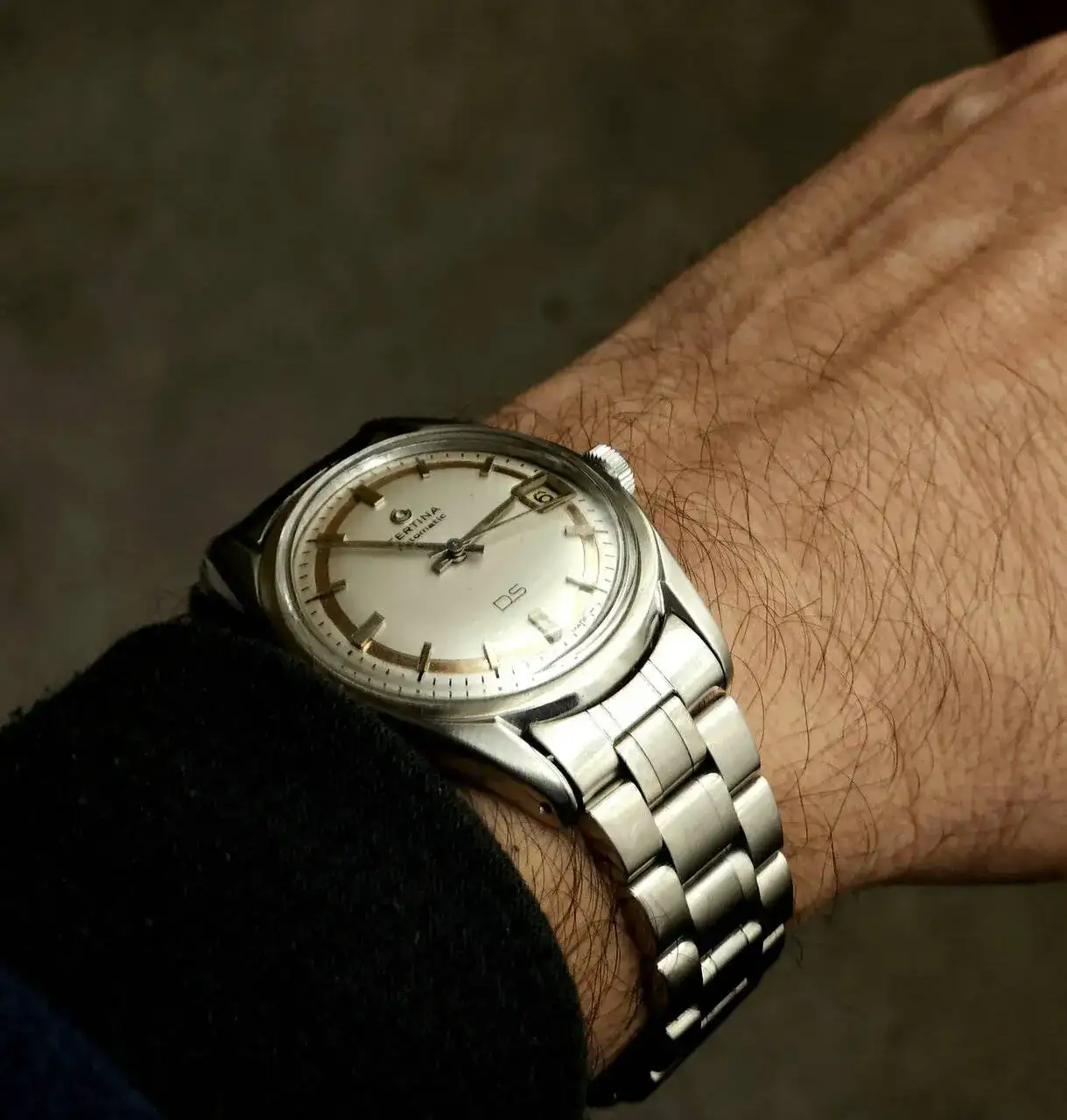 El dial, fenómeno. Agujas e índices de bronce con el lumen tirando a amarillento gastado, como el de radio cuando amararillece. Además es el mismo tono que los amarillos del dial, muy logrado. Y al ser el cristal de cúpula le da mucho fondo.