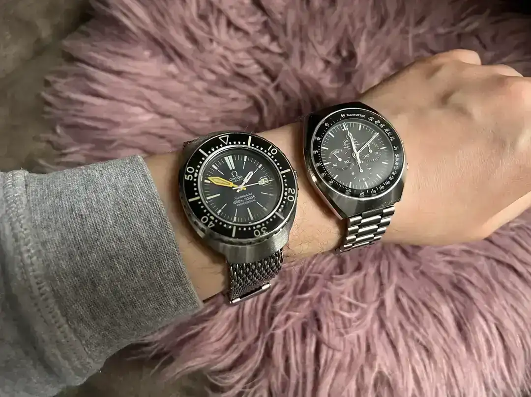Aquí dos relojes sententeros, el Seamaster 1000 junto al Speedmaster MK2,