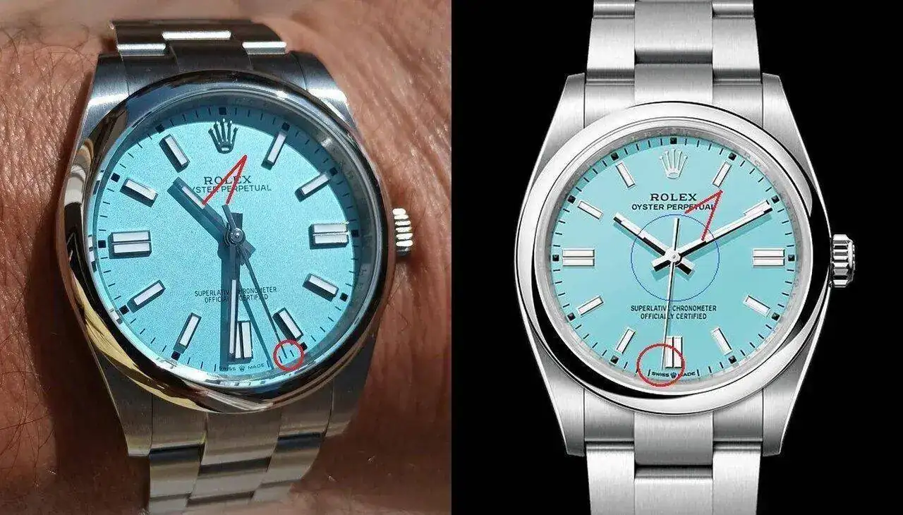 Muy bien observado, la foto de la web de Rolex sí que podría ser un render o es una imagen con mucho tratamiento digital. Debí haber buscado más y mejor. Por lo que encuentro ahora hay dos versiones, una con aguja segundera de cola corta (para 41 mm) y otra versión con cola larga (para diámetro de 36 mm), como en este caso ahora real sin dudas.