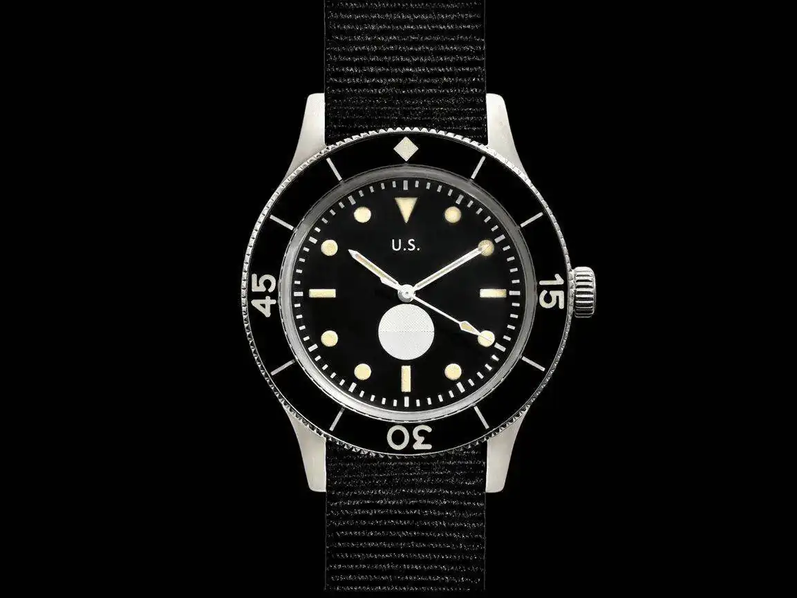 En homenaje al legendario Fifty Fathoms de Blancpain, OCEAN OF STORMS es un llamativo reloj de submarinismo de color negro impulsado por un movimiento SISTEM51 y acompañado de una correa NATO.www.swatch.com