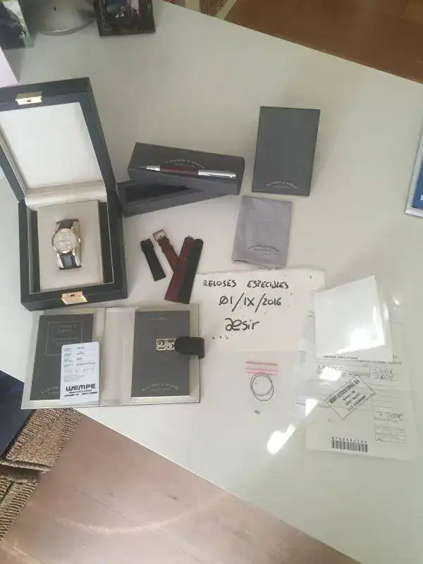 Desde que se le hizo la revisión nunca ha salido de la caja. Solo para darle cuerda y compararlo con el resto sobre su estado de marcha.
