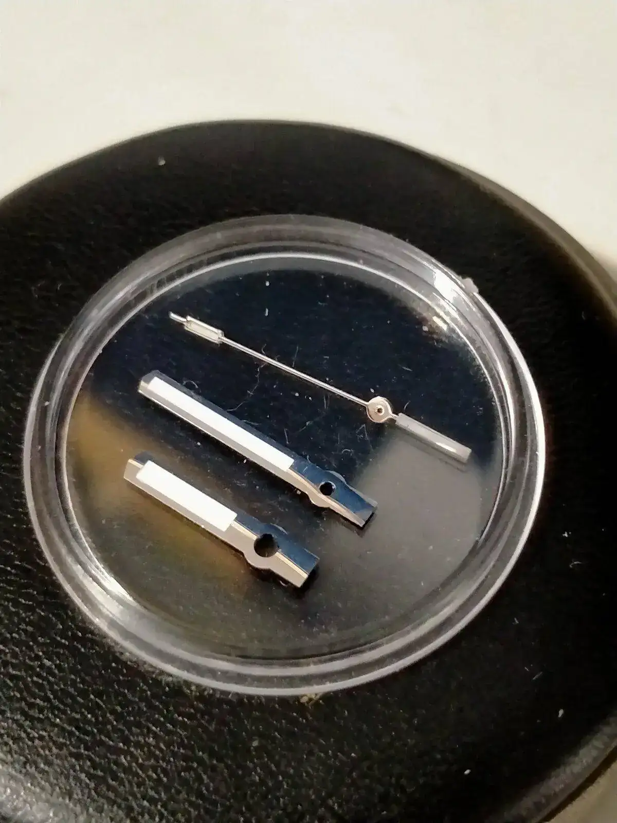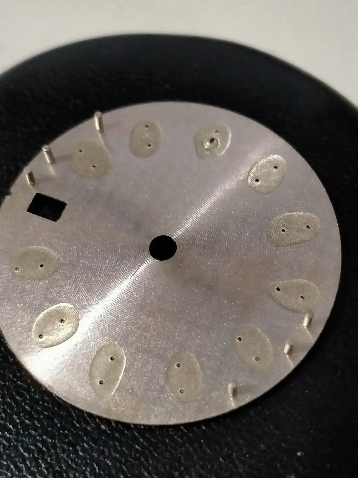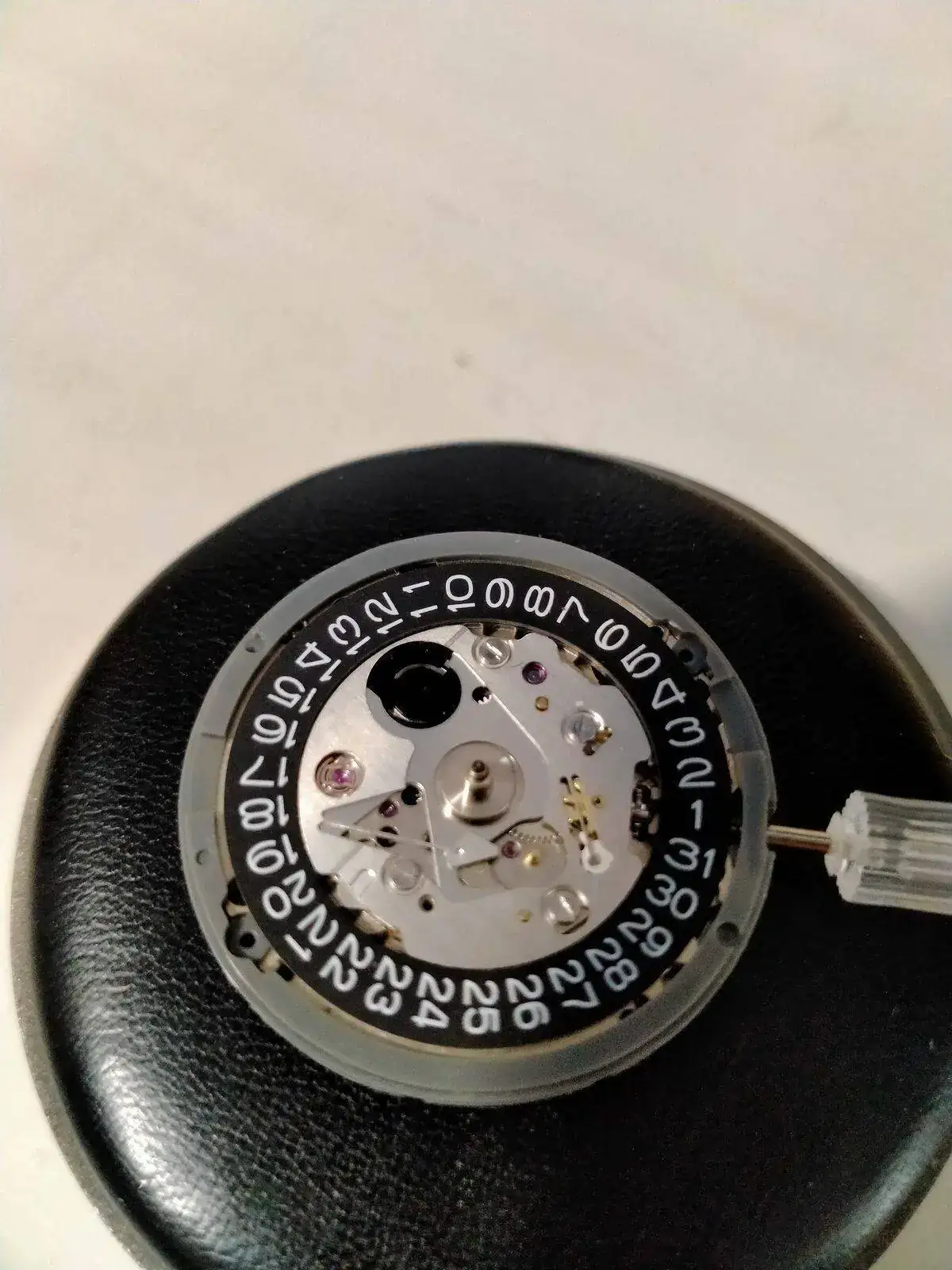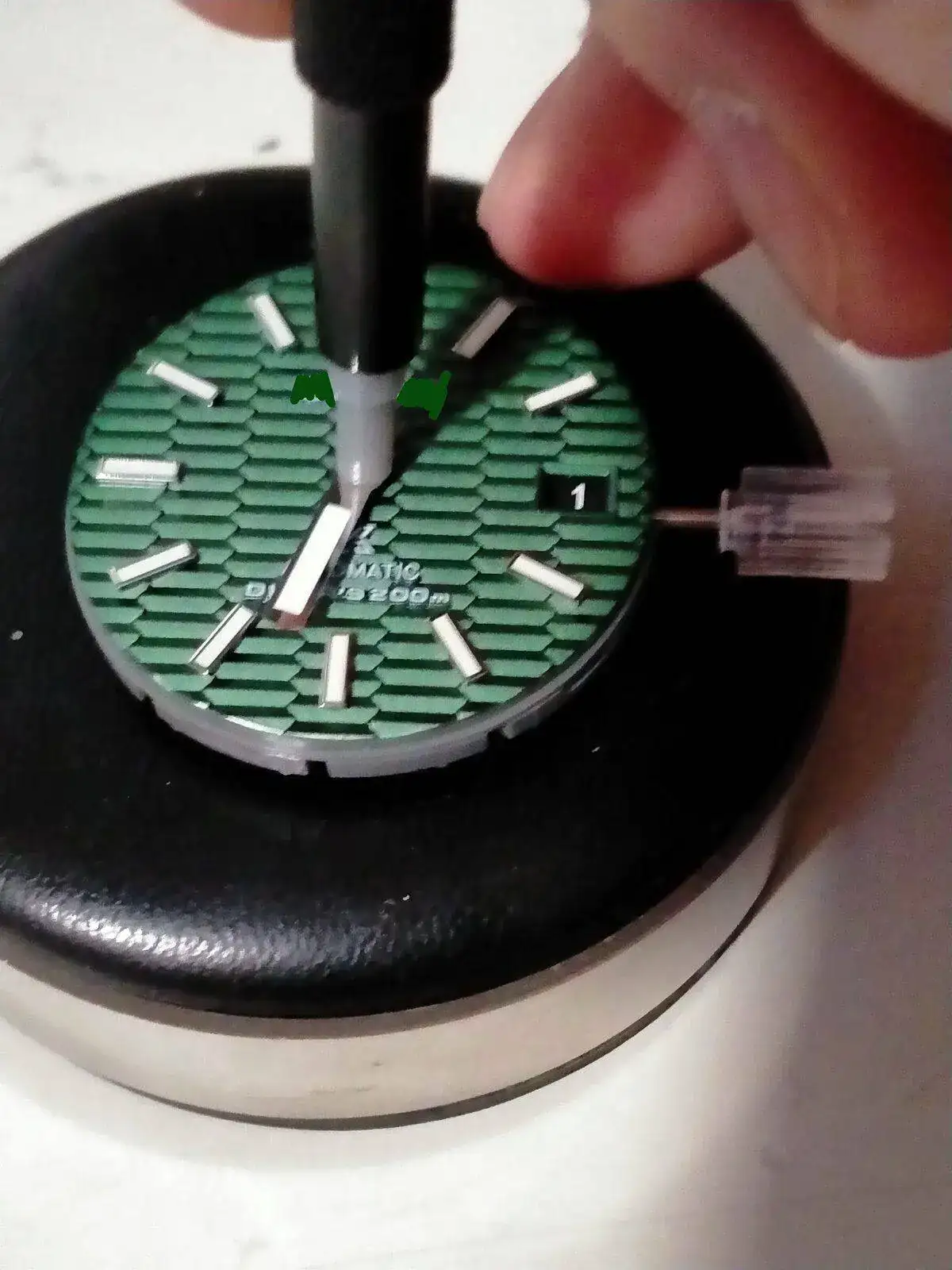 -montar dial en el movimiento -montar aguja horaria a las 12, juuuuusto cuando cambia de dia el calendario. -montar la minutera cuadrandola con la horaria a las 12. Todo esto con la corona en la posición mas salida. - comprobar su buen giro ,cambio de fecha y q no rocen.... así como q esten paralelas al dial y entre ellas. -y mañana la segundera . Miedo me da......