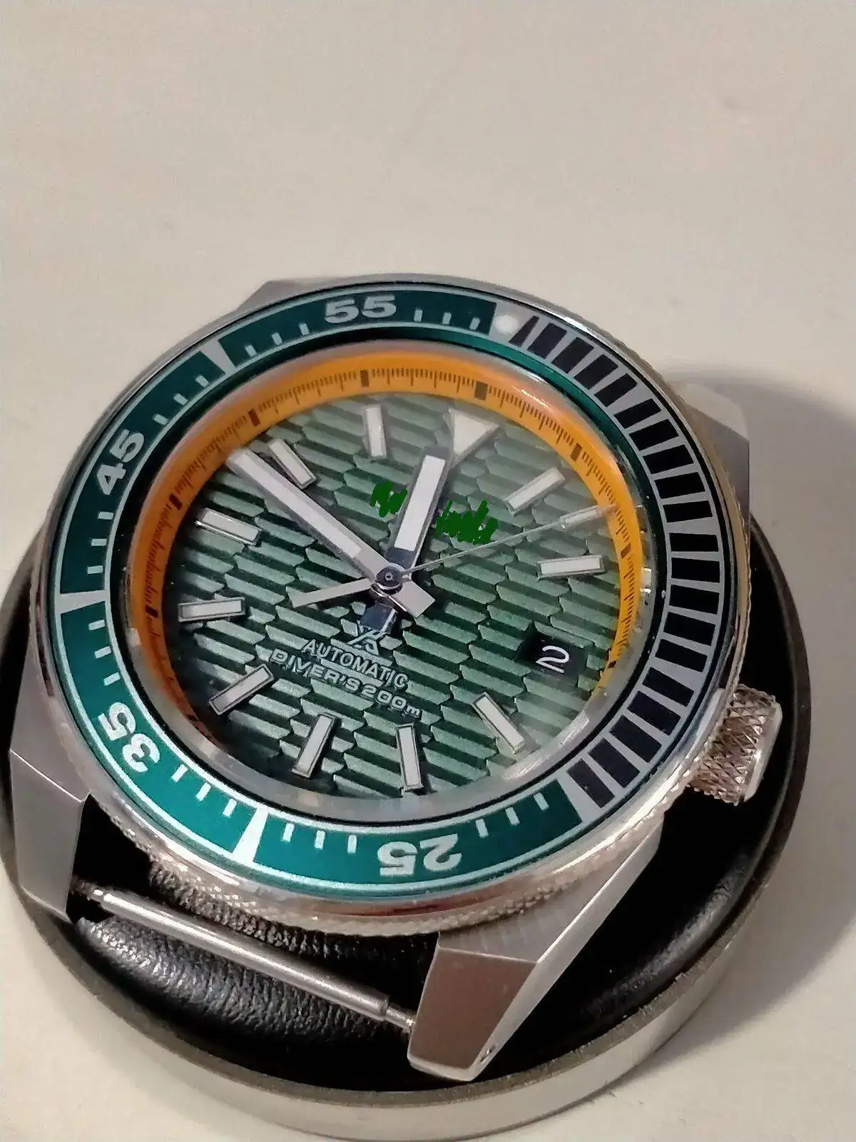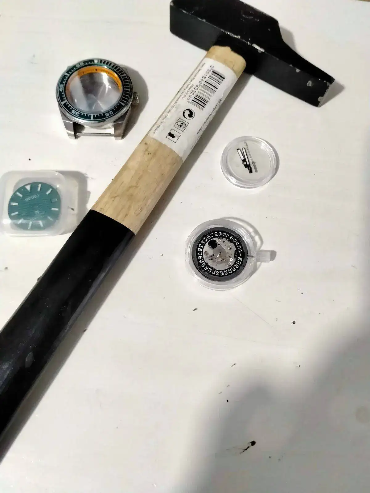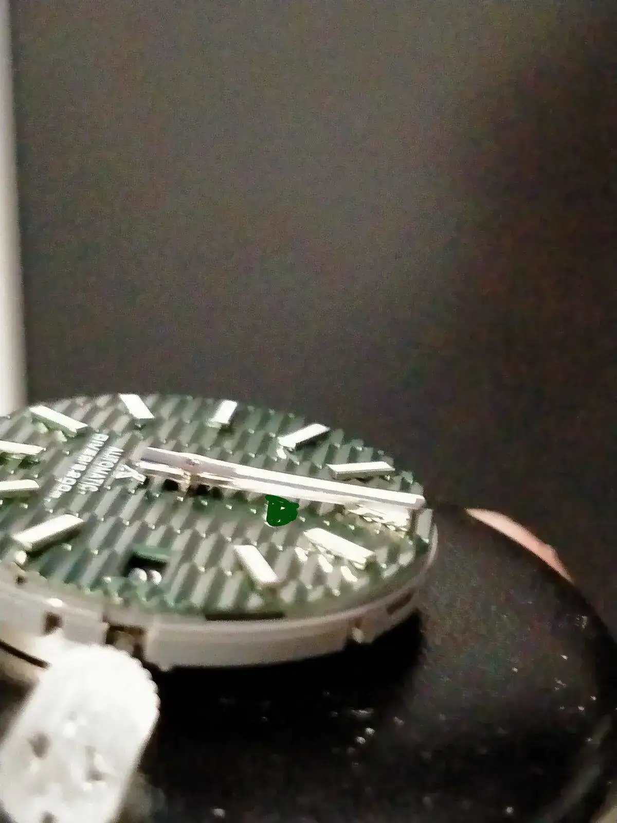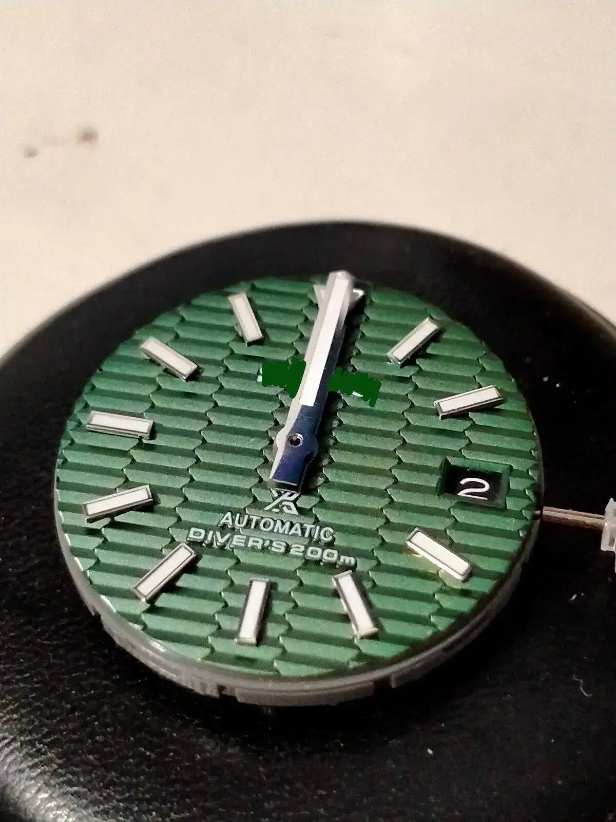 -montar dial en el movimiento -montar aguja horaria a las 12, juuuuusto cuando cambia de dia el calendario. -montar la minutera cuadrandola con la horaria a las 12. Todo esto con la corona en la posición mas salida. - comprobar su buen giro ,cambio de fecha y q no rocen.... así como q esten paralelas al dial y entre ellas. -y mañana la segundera . Miedo me da......