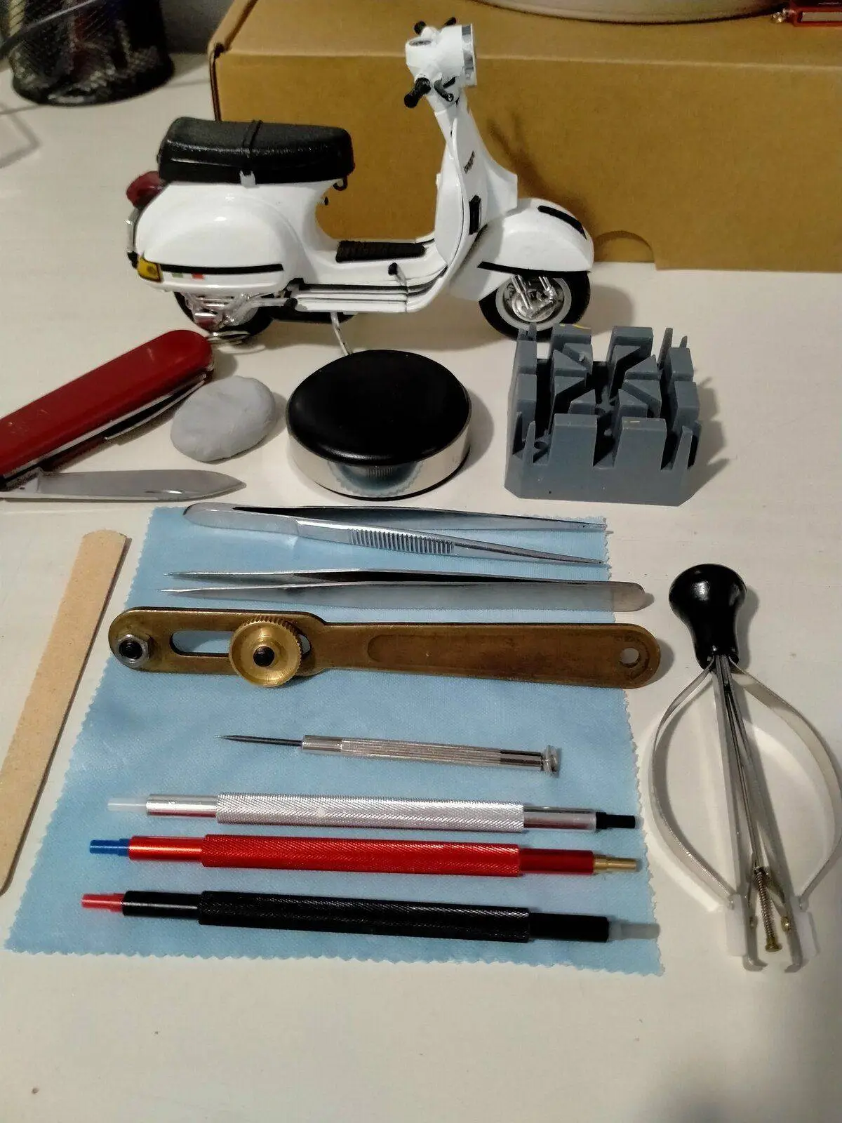 Os presento el material recibido y las herramientas que usaré. Creo que tengo toooodo lo necesario para ser mi primer "mod". Que sea lo que Dios quiera ...