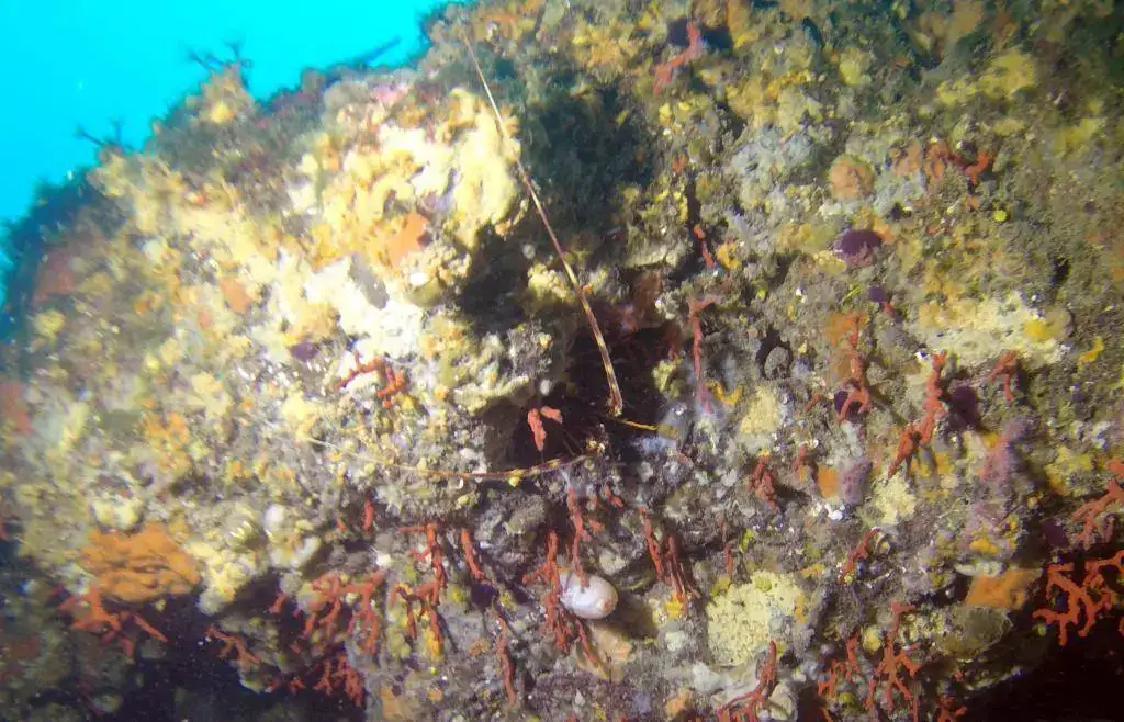 A partir de -30 m., en los agujeros de las rocas se veían algunas langostas asomando la cabeza.