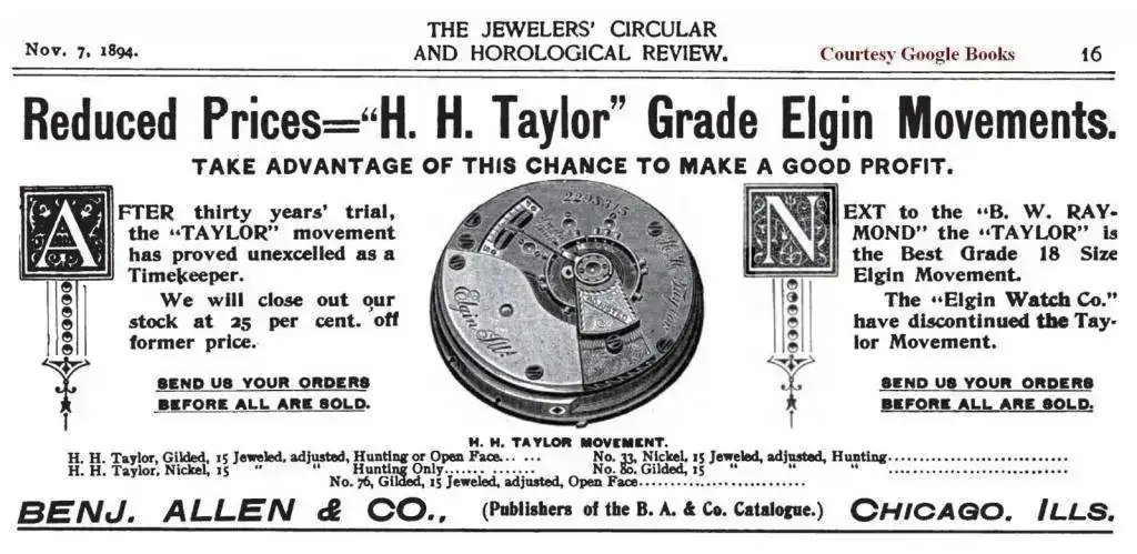 si volvemos a observar la publicidad de 1869 vemos que el HH Taylor también esta considerado como “grado ferroviario” No me voy a extender demasiado en este interesantísimo tema de investigación, pues quiero que sirva de tema argumental para futuras presentaciones. Sólo apuntar que es importante diferenciar que un reloj con ciertas condiciones podía ser aprobado para su uso en el ferrocarril y otro que ya salía de fabrica con las especificaciones propias exigidas por el mismo.