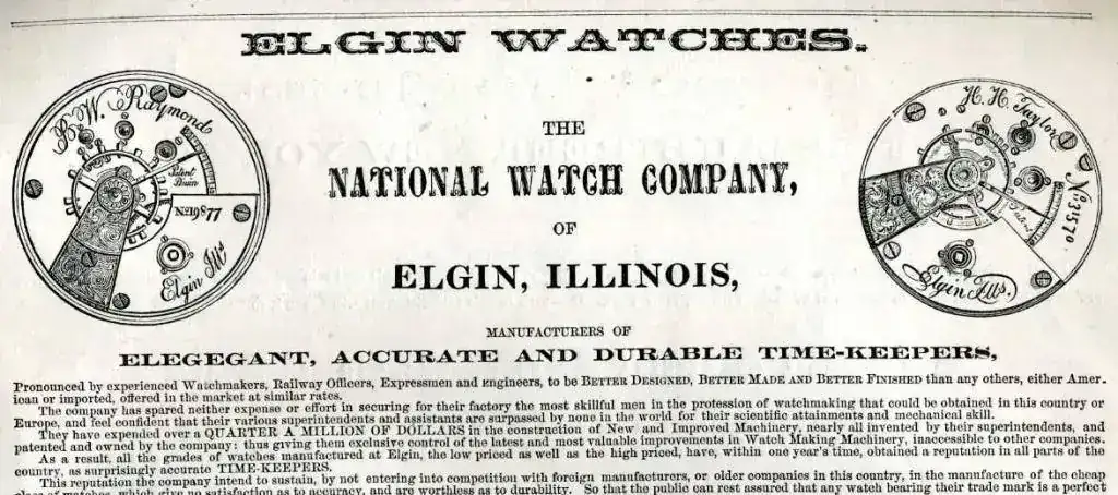 Esta expansión del ferrocarril genera el nacimiento de nuevas industrias estrechamente vinculadas al mismo. Así en 1864 ve la luz la que con el tiempo se convertirá en la fábrica de relojes más grande del mundo: la “ National Watch Co” ubicada en Chicago, Illinois y que en una década más tarde se rebautizará como la “Elgin National Wacth Co”