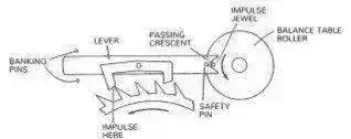 Otro de sus elementos diferenciadores se refiere a su tipo de escape que es del tipo “Right angle escapement” típico de los relojes ingleses anteriores a su época y que podremos entender más gráficamente en esta imagen, para que lo podamos diferenciar del escape típico suizo (aunque este último también fuese inventado y desarrollado por un inglés)