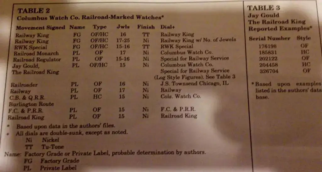 Muchos de estos nuevos movimientos de factura norteamericana adoptaron nombres significativos para ser comercializados en el ámbito del ferrocarril como podemos ver es esta tabla extraída del anteriormente citado magazine. Fijaos en la cantidad de Rubís que lleva el modelo Railway king siendo excepcionalmente todos funcionales.