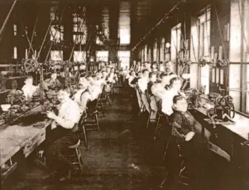 Y aquí una imagen de la nueva fábrica en la que el hijo menor de Gruen (Fred) que fue licenciado con honores en la escuela relojera de Glashütte, tuvo cada vez un papel más relevante en la misma.