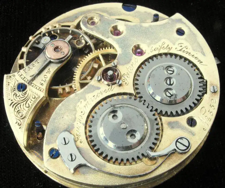 Debemos remontarnos a 1874 cuando un joven inmigrante relojero alemán llamado Dietrich Gruen (seguro que os suena este nombre) presentó una patente que fue aprobada y que supuso un gran aporte en el mundo horológico de la época. Esta, consistía en el conocido sistema de seguridad “Safety pinion”. Este “piñón de seguridad” que iba montado en el eje central permitía liberar toda la fuerza de retroceso en caso de rotura del muelle real, evitando así la fractura de algún diente de los trenes de rodaje.