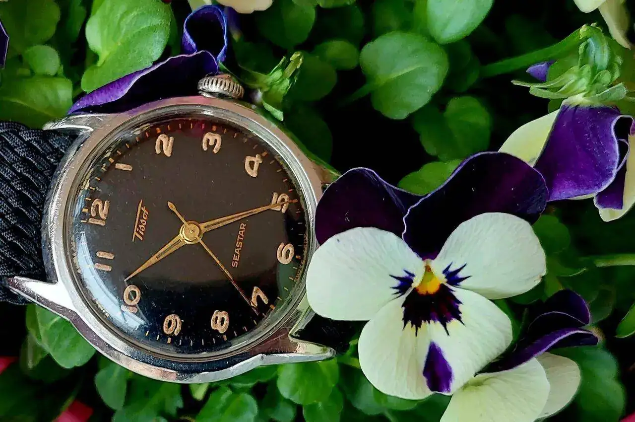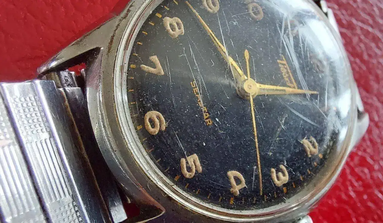 Se ve un poco azulada por la luz del atardecer. Las agujas estupendas, los índices y grafía Tissot tan preciosos