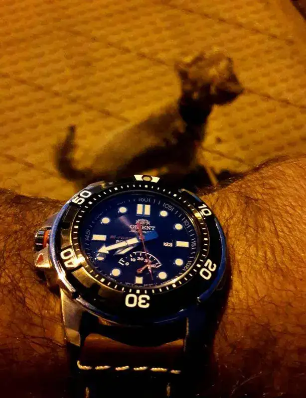 Bueno me puse esta mañana el Combat, pero al rato me pasé al Casio ... para bricolaje en casa y lavar el coche, después el Garmin para la pisci y el Marinemaster ahora ya preparado con la hora de mañana ... me apetecía ... je,je ...
