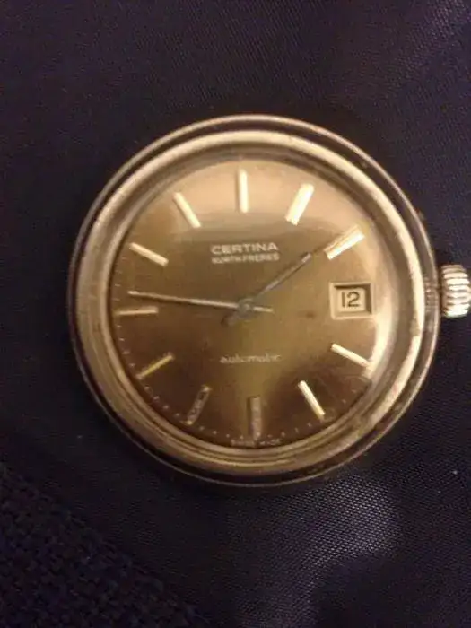 Hola, a ver si algun experto me puede echar una mano con este reloj, era de mi abuelo que ya a fallecido, por lo que tiene un valor sentimental para mi. Solo se que pone certina y queria saber si alguien me podia decir algo mas de el, su estado es como esta en la foto, no tiene correa. Tambien pediros ayuda, yo vivo en alcala de henares, a ver si alguien me puede recomendar un relojero por los alrededores donde llevarlo para que le hagan una revision y le puedan poner una pulsera, logicamente en esta epoca que estamos no sobra el dinero, a si que alguno que no me cobre una pasada. De verdad que agradeceria mucho una ayuda. Ahora las fotos.
