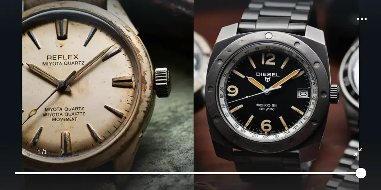 Haber si alguien sabe algo de los relojes Reflex o Diesel Time, si buscas Reflex o te salen vintage. El Reflex que me lo han dado gastadete , de años , lleva un miyota de cuarzo. Y el Diesel Time , no tiene nada que ver con Diesel , este es de metal , y lleva un SII o PC de esos negros de seiko, salen fotos vintage la mayoria de modelos de mujer . pero nada de donde son . El primero creo que es una marca inglesa, en Mikrolist salen 3 , pero alemanes no creo que tenga nada que ver con este reflex que solo salen de cuarzo.