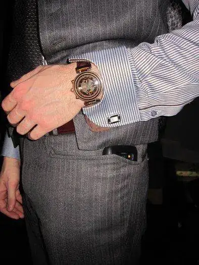 Virgen Santa ! Entre reloj y el móvil....seguro que no lleva un corte en la trasera del pantalón para que se vean sus calzoncillos Calvin Klein de seda ?porque no hacer el mismo destape en la entrepierna del pantalón?.....vaya! Vaya,!..Nicolasa!Yo sigo una regla simple. Si no desentona, no me deforma demasiado la ropa ni daña el puño por el roce, lo llevo siempre visto. El reloj es también un complemento comunicador y, como tal, si me lo pongo es para que se vea en conjunto con el resto de mi vestuario.