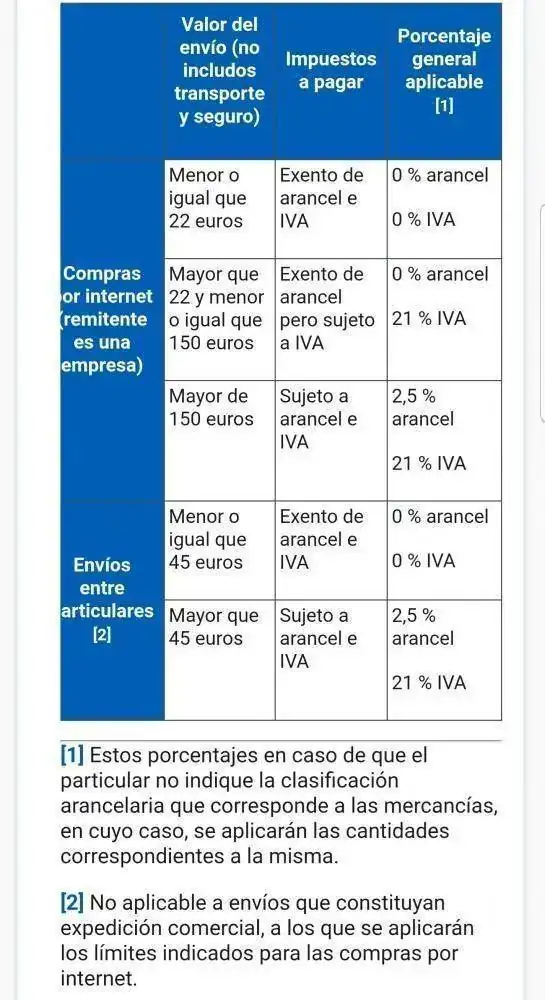 Pues acabo de revisar lo de los aranceles y solo se aplican si la mercancía supera los 150eur, es decir, si importas una correa de cuero que tiene aranceles del 6% pero importas solo 1 con un valor de 30eur pues no pagas aranceles pero si importas 20 al superar los 150eur el total de la mercancía pues ahi si que tendrías que pagar aranceles. Realmente por lo que yo se el objetivo de los aranceles es proteger a los productores nacionales y se ponen aranceles para que los mayoristas prefieran comprar producto nacional antes que internacional ya que al comprar internacional pagarían aranceles y les saldría mas caro. El objetivo de los aranceles no somos los consumidores normales y de ahi que solo se aplique a partir de 150eur.Gracias por tus palabras, al final todos intentamos aportan por el buen común.