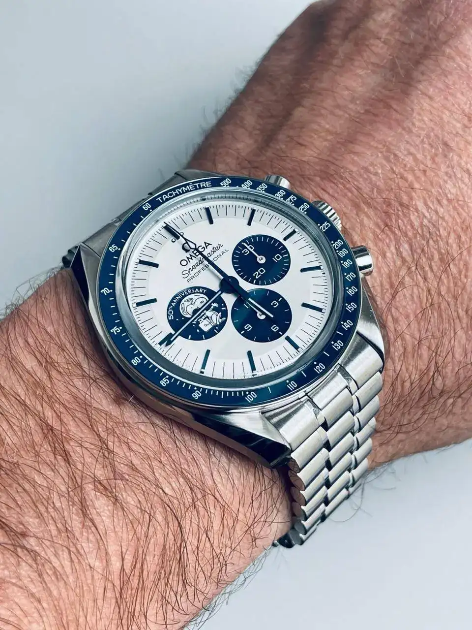Lo lucia en la película, el Speedy Pro estándar, así como sus compañeros de reparto y en la vida real también, se ve que le gusto el reloj, cosa esperable por otra parte.