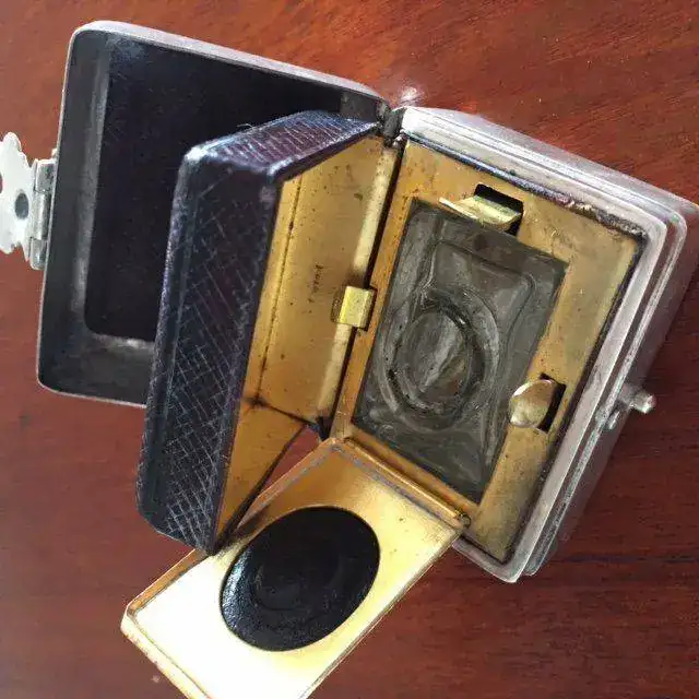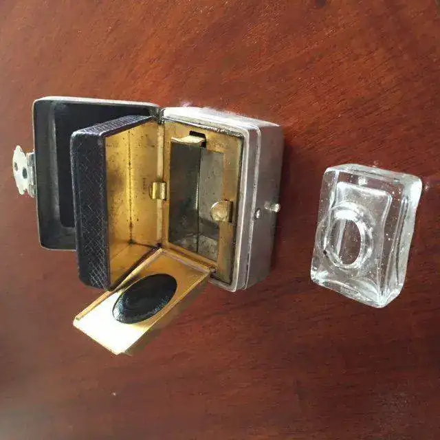Cuando eramos pequeños y visitabamos la casa familiar la biblioteca de mi abuelo era uno de aquellos lugares celosamente guardados en donde no estábamos permitidos de jugar. En ella escribio una treintena de libros y más de 300 artículos académicos en sus prolíficos 105 años de vida. Una tarde cuando no andaban mis primos de visita y yo me entertenía viendo unas revistas de principio de siglo con ilustraciones de la Gran Guerra, mi abuelo me llamó a su escritorio, y abriendo una gaveta secreta sacó este tintero de su interior. Me dijo que era el tintero de viaje de su abuelo que era juez de tierras en la provincias y viajaba mucho por los litigios. Nunca más volvía a verlo, y el escritorio con llave no permitía hacer mayores averiguaciones. Ahora que el no está, y que aquellos amados muros han caído ante el "progreso" inmobilirio en Lima, me ha tocado en suerte el escritorio y para sorpresa mía, el contenido de la dichosa gaveta...